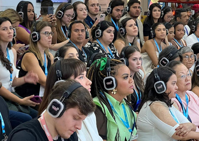 Nosso sistema permite que cada participante escute com total clareza o áudio de palestras, apresentações ou vídeos, diretamente em fones de ouvido de alta qualidade, sem nenhuma interferência do som ambiente.